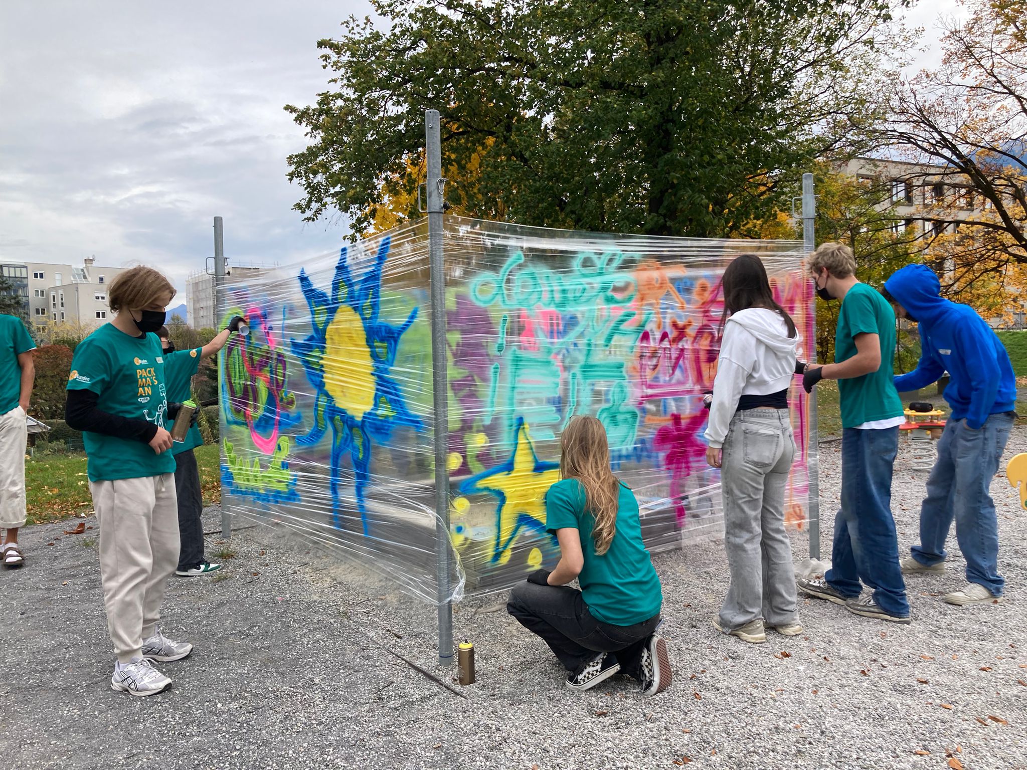 Es wird fleißig gesprayt. (c) Caritas Tirol/Auer jpg, 5 MB -